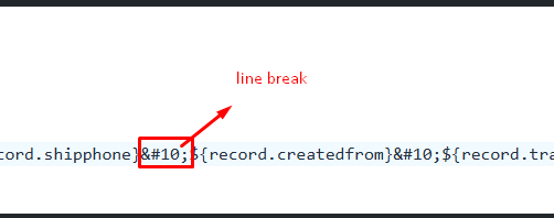 - Field Layout: In this example, each field (record.entity,record.shipattention, etc.) will appear on a new line in the encoded QR code data. This approach allows each piece of information to be organized line-by-line for easier reading when scanned.
