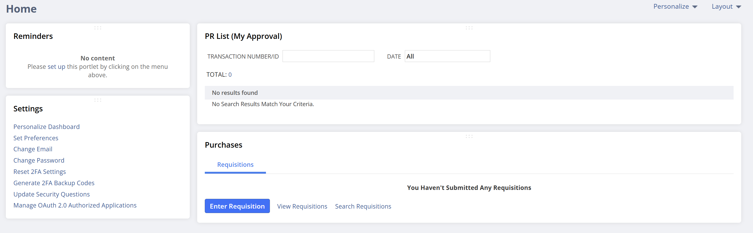 2. Customize Your Dashboard > Click the Personalize > A panel will appear with available dashboard “portlets” (widgets) > Add Portlets