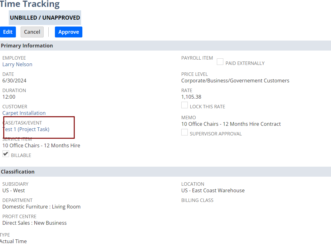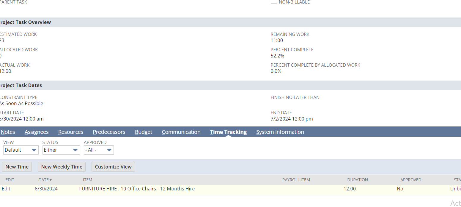 Attaching Time Sheet to a Project Task We can select the Project Task in the Timesheet entry for a project.