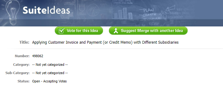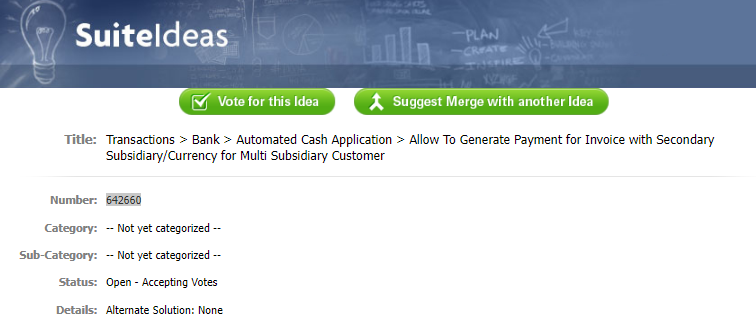 The payment for invoices with different subsidiary in the Automated Cash application page is also logged as an enhancement in the voting stage [#642660]