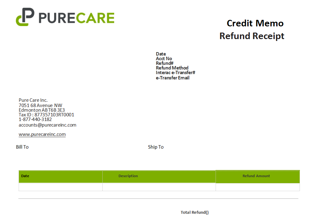 The credit memo referenced on the attached receipt was refunded by e-transfer to ___________________ (pull this info from memo field).