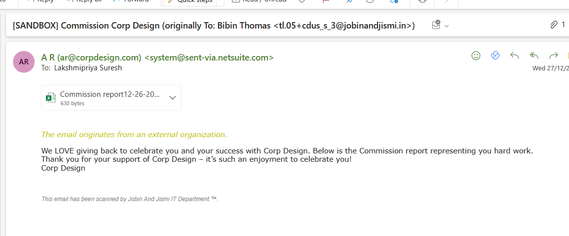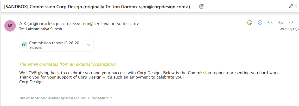 - The automated commission report emails was successfully sent to the sales reps.