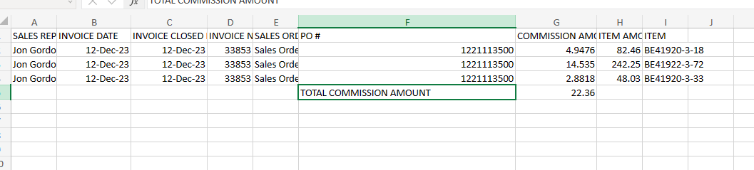 - To send the commission report to the appropriate sales representatives, we have developed functionality that prepares a CSV file listing the paid-in-full invoices for each sales rep and automatically sends these to the respective sales reps.