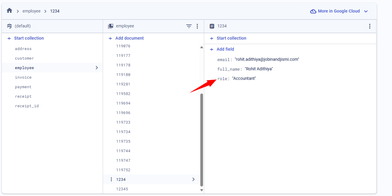 In the Firebase for the employees based on the required email NetSuite will show the roles and update it to the firebase for all the employees and users