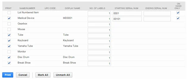 - Check the Print – Non-Sellable Items box to print labels for items that are generally not sold on a sales transaction i.e., description, discount, markup, and payment items.