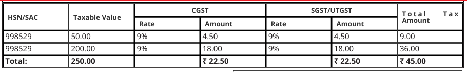 <th colspan="2" style="align: center; text-align: center; vertical-align: middle; border: 1px solid #000;">SGST/UTGST</th>