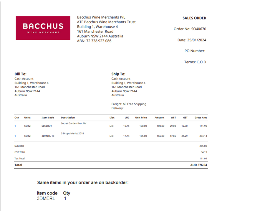 - We will not be updating any other details in the SO PDF other than the backorder summary.