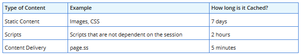The length of time that a certain type of content is cached in the CDN also indicates the time it takes for returning customers to see updated content. Note the following:
