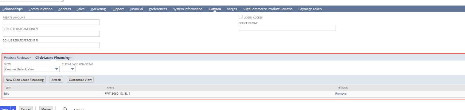 • Scenario with Logged-in Users: Users may not be logged in while submitting the click-lease financing form or may provide an email address different from the one registered on the website. Thus, we cannot directly store the form details in the customer record. Instead, a new custom record will be created with fields for email, parts, and customer information.