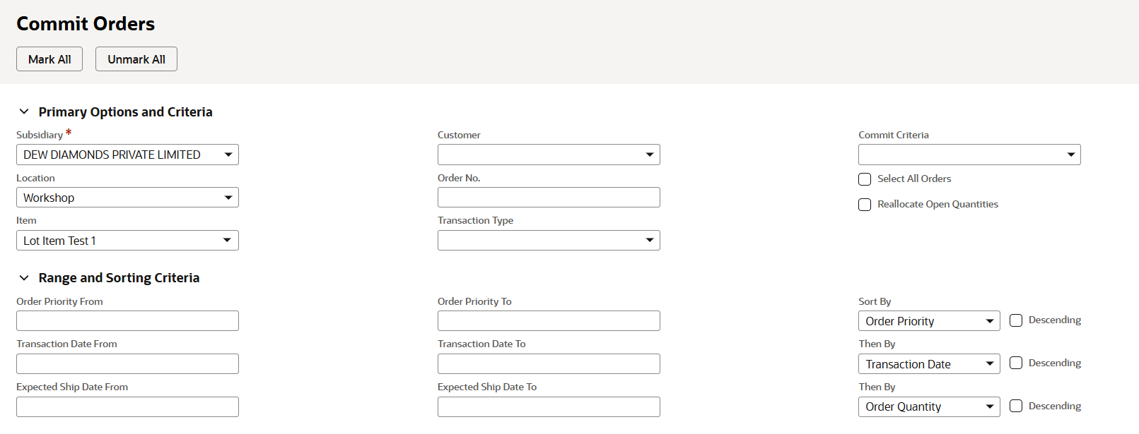 We can set filters to identify the orders which we need to commit.