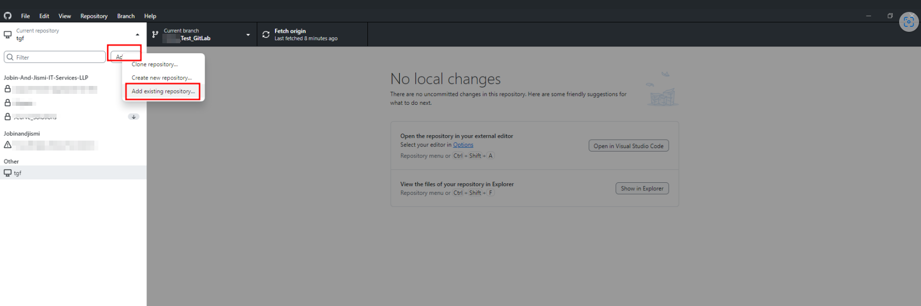 • Using the GitHub Desktop app, we can commit, push, and pull the details. For that, ‘Add’ the existing repository to the GitHub desktop app and add the repository that is already cloned to the local system.