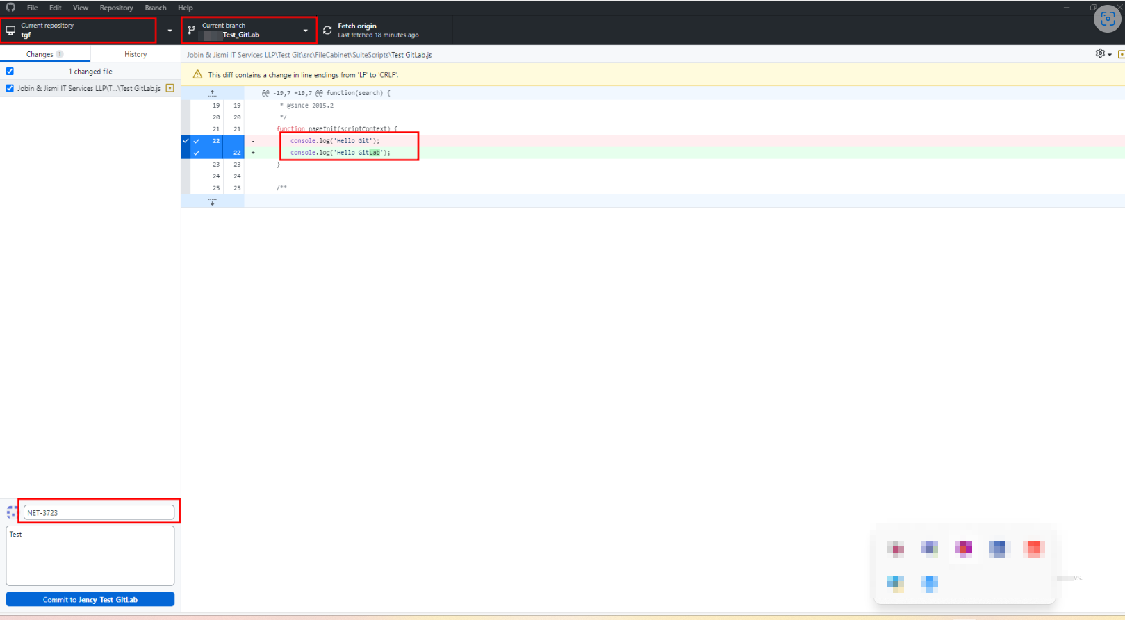 Commit the changes to the GitLab using the GitHub desktop application