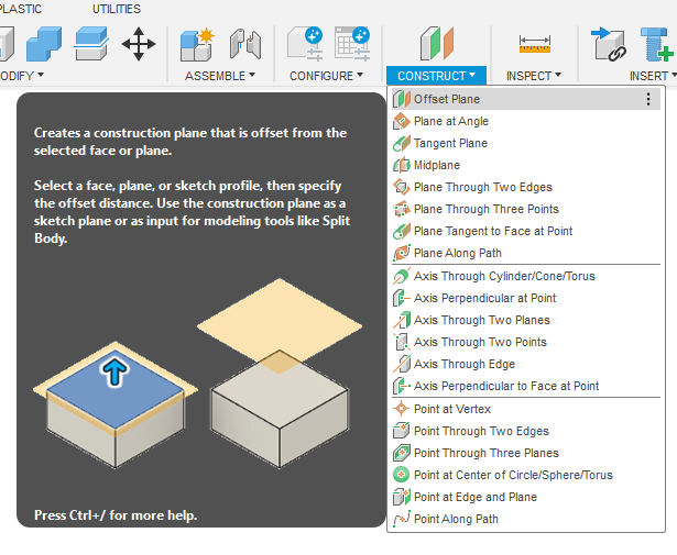- First Select the face or plane and select the distance it needs to be offset and click ok