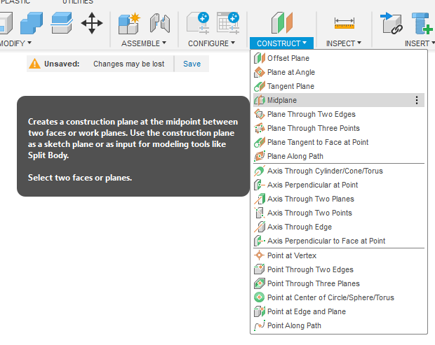 - There is a lot of tools in the construct toolbar, ranging from construction of planes to axis and to points taking into consideration different scenarios