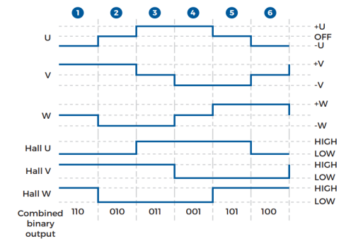 Despite its high accuracy and cost-saving characteristics, sensorless commutation comes with some drawbacks. A minimum back-EMF is needed to properly execute commutation. This means that when the rotor is stationary, the motor is not able to start since no back-EMF is produced. Similarly, the induced back-EMF at low speeds might not satisfy the minimum speed required, resulting in a poor commutation. A common solution is to drive the motor through an initial open-loop stage where it is “freely” accelerated up to a minimum speed where the control algorithm can keep up with the commutation. Other solutions involve a pre-positioning step, initial position detection of the rotor with a microcontroller, or reading the line-to-line voltage difference to amplify the back-EMF.