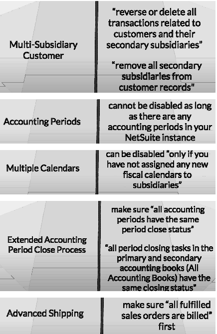 Complex aspectes of enable features Complexities of enable features : Features that require another feature Features that require additional steps to use Features that require multiple steps to disable Features that cannot be disabled