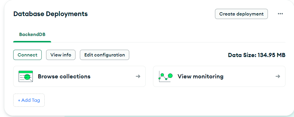 Use the connection string with the code in the Node JS to connect MongoDB with the NodeJS project.