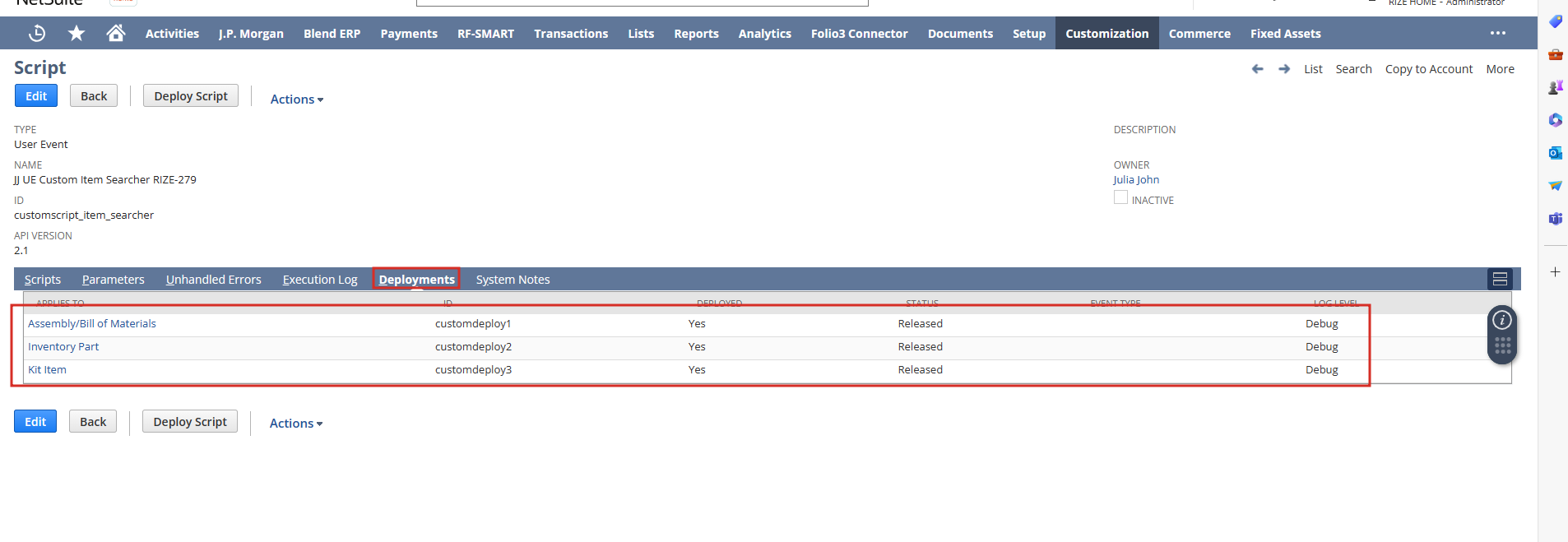 Defines the function definition that is executed after record is submitted. and the script need to be deployed based on the available item types in the account.