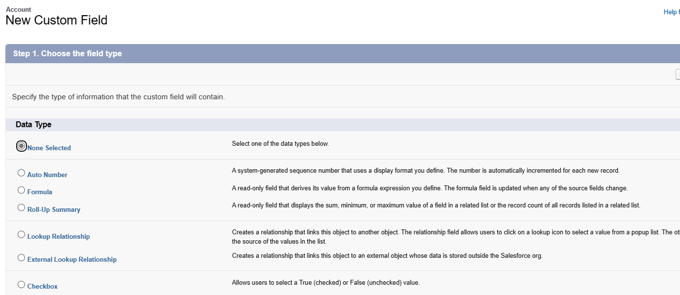 Select the field type of the field and click next.