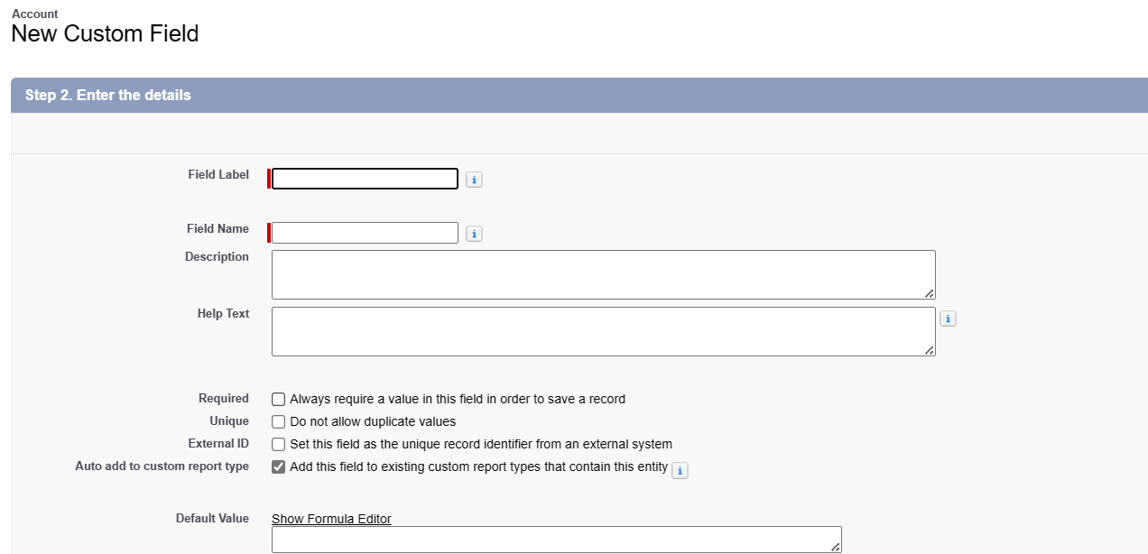 Enter the details of the field details and save.