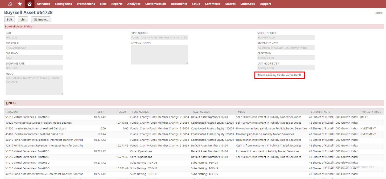 • Internal ID: The journal internal Id of Asset Buy or Sell.