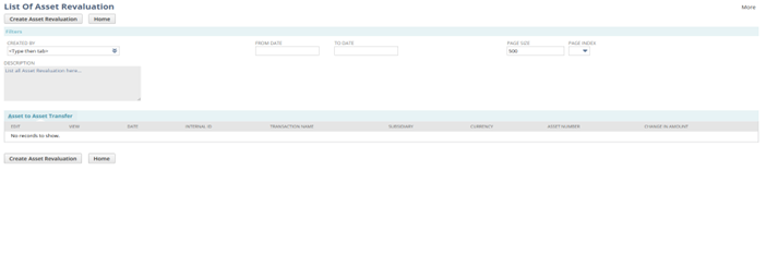 • Page Size and Page index :  A single page consisting of maximum 500 Asset Revaluation