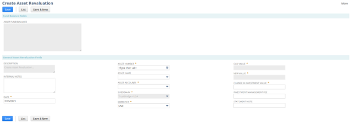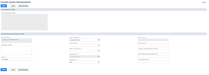• Date : Transaction date of the Asset revaluation (change in date lead to change in the existing asset balance)