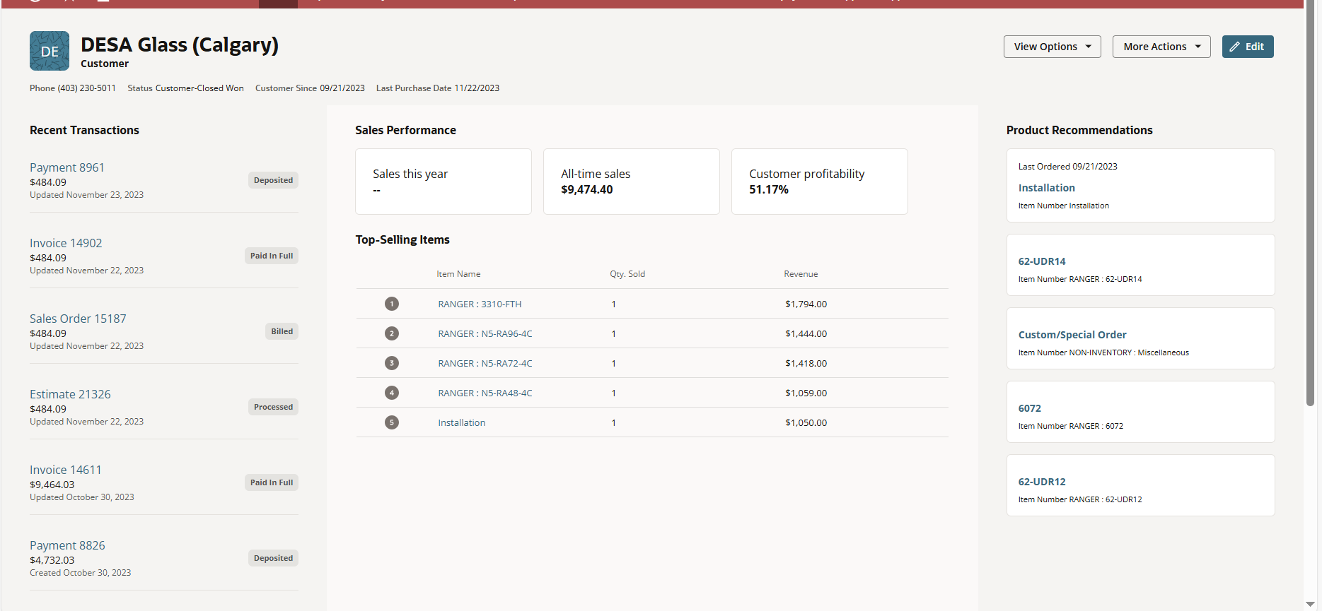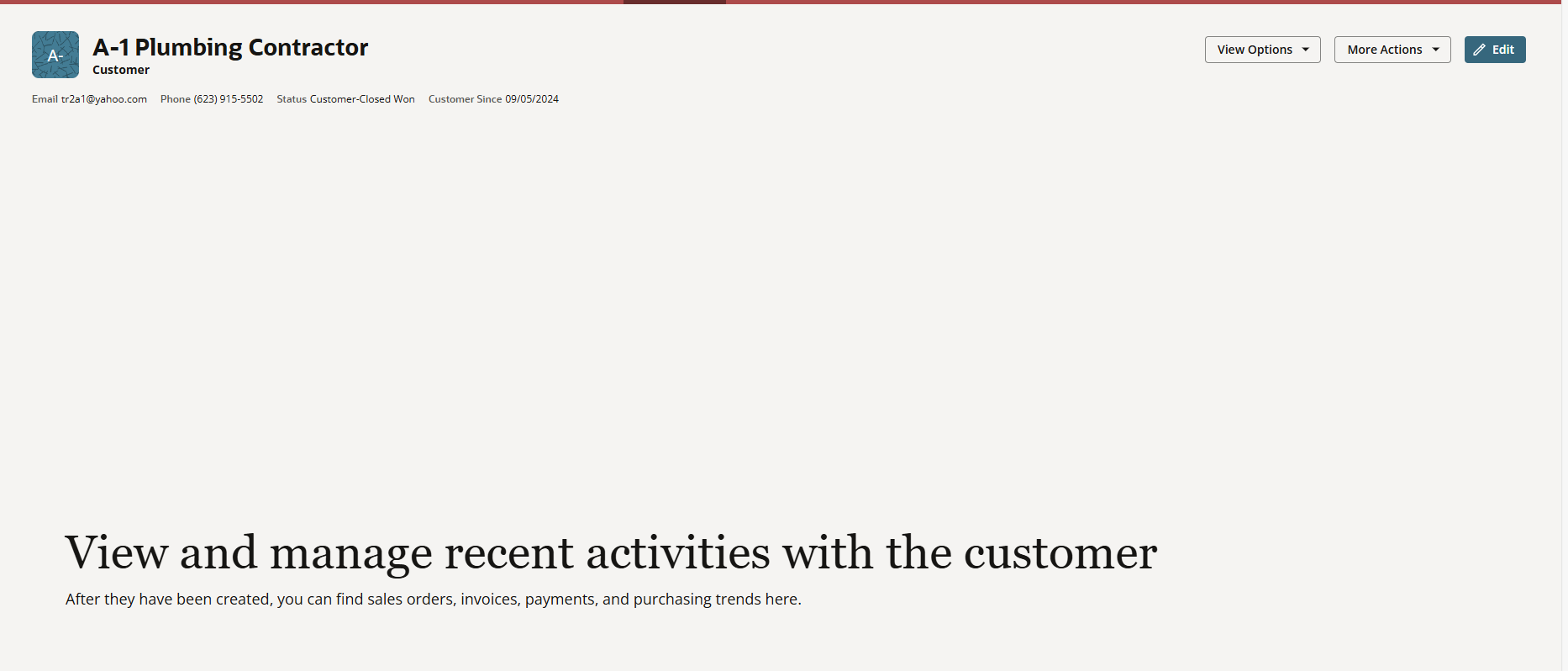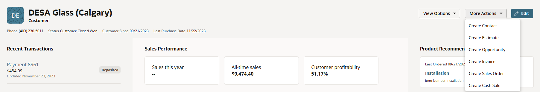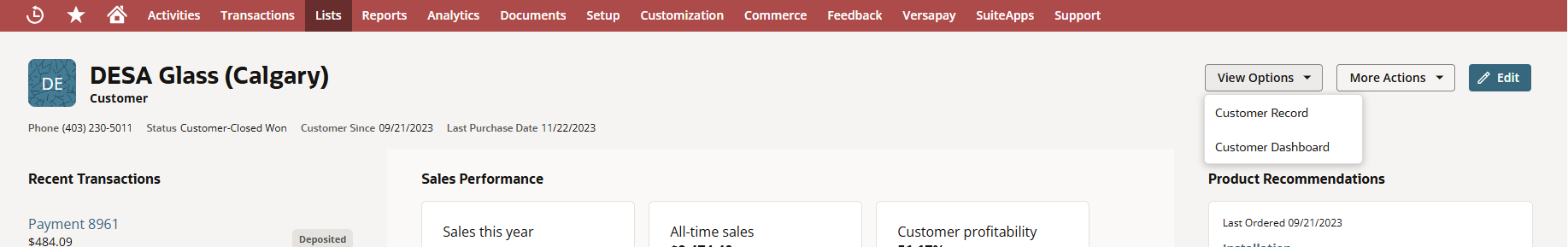 The View Options will show the list for Customer DB and Customer Record