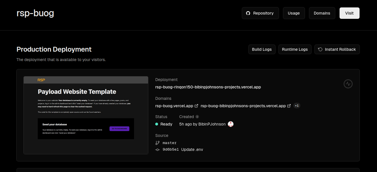 A deployment is the result of a successful build of your project. A deployment is triggered when you import an existing project or template, or when you push a Git commit through your connected integration or use vercel deploy from the CLI. Every deployment generates a URL automatically.