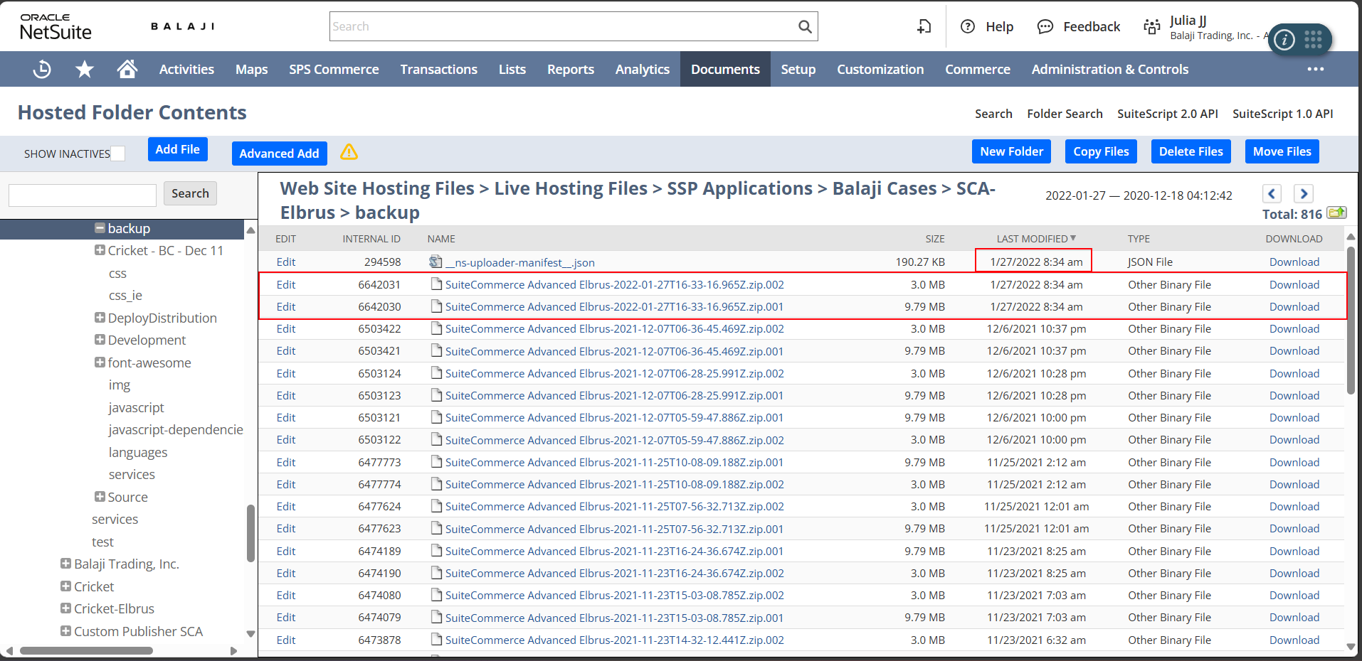 Go to ‘backup’ folder in the ‘Development’ directory of the SSP application. Check if there is any previous deployment was done. If so, download the last deployed zip file. If you find multiple zip files deployed on the same date and time and named like zip.001, zip.002… then all such files should be downloaded.