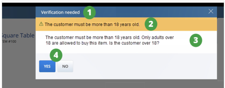 - Option window – This window enables the sales associate to choose between two options. Use the option window to display the following: