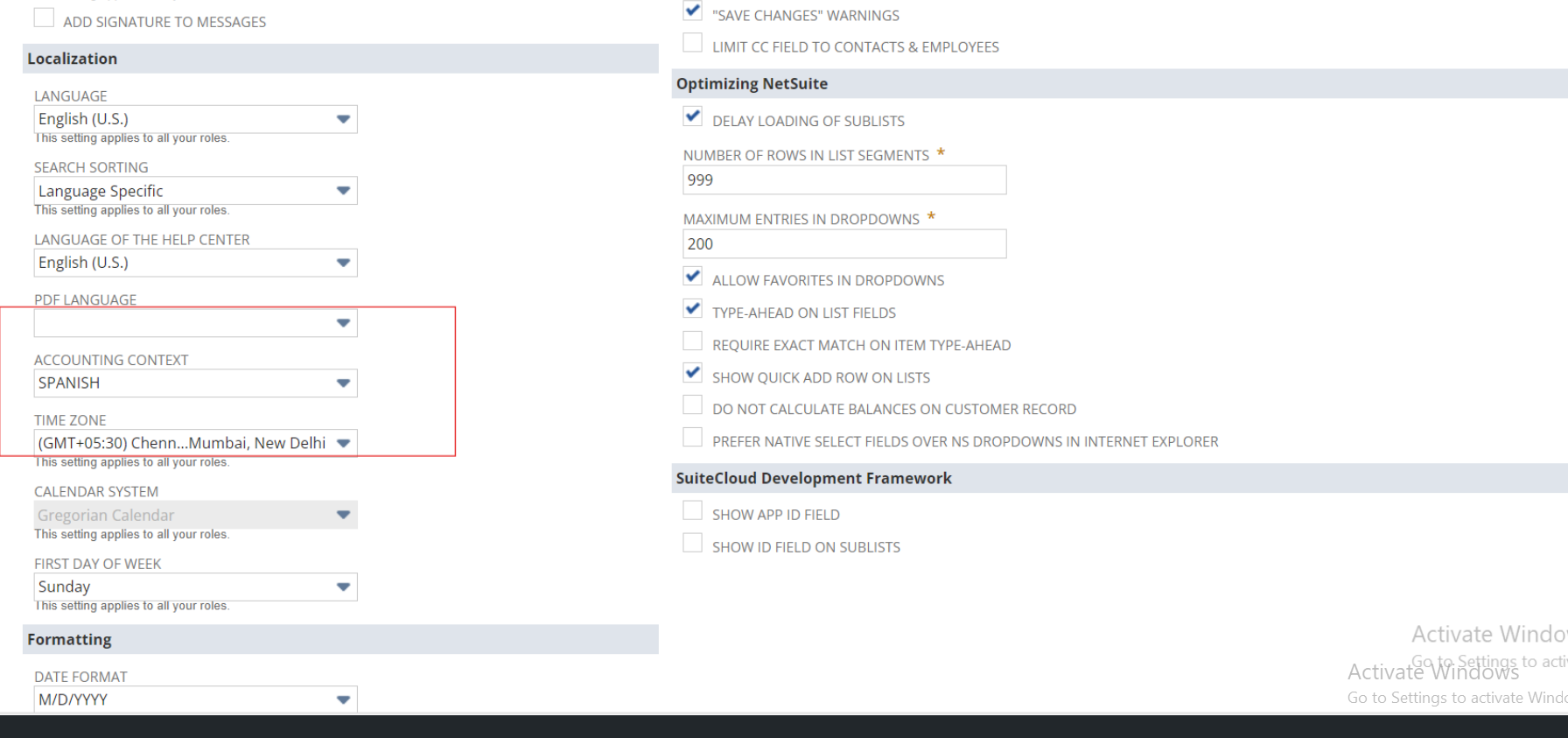 - In Set Preferences, select Accounting Context “Spanish”