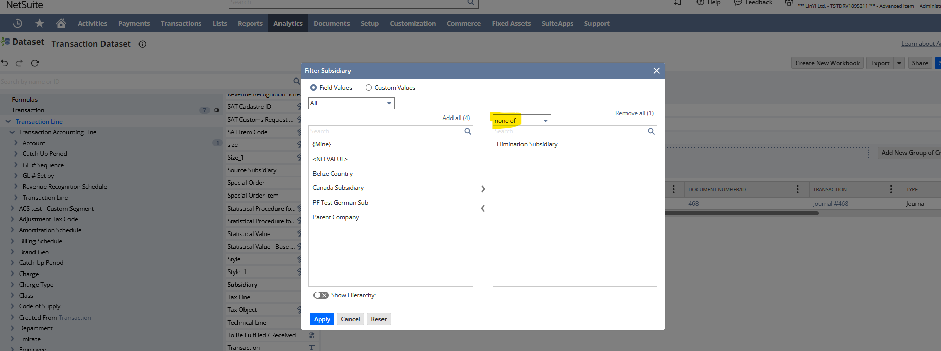Exclude the Elimination Subsidiary/ies: Transaction Line