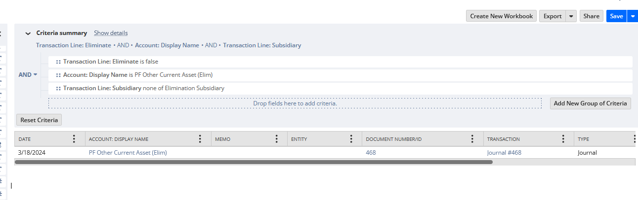 How to quickly identify which JEs had intercompany accounts where the box “eliminate” was not ticked, aside from clicking into each JE manually to check one by one?