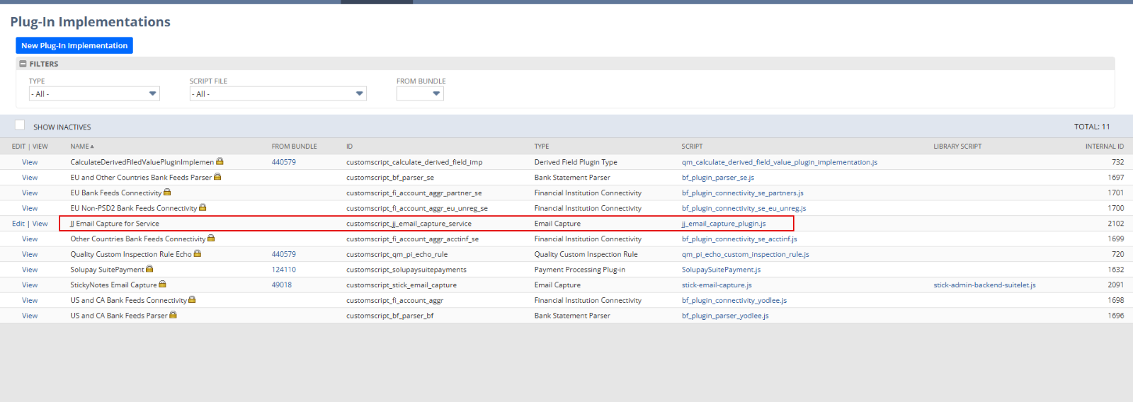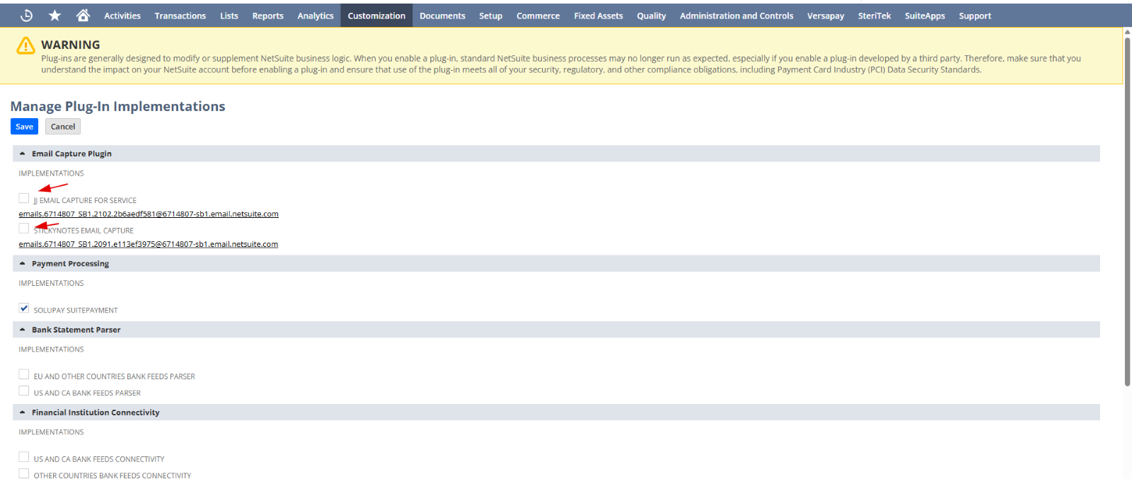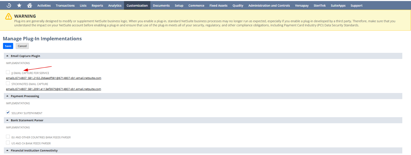 For example, if the account ID was 123456, the NetSuite-generated email address for a plug-in implementation looks like emails.123456.xxx.xxx@1234567.email.netsuite.com