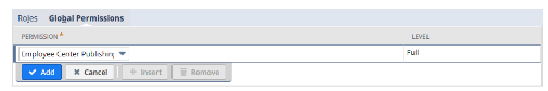 On the Global Permissions subtab, from the Permission list, select Employee Center Publishing, and then click Add.