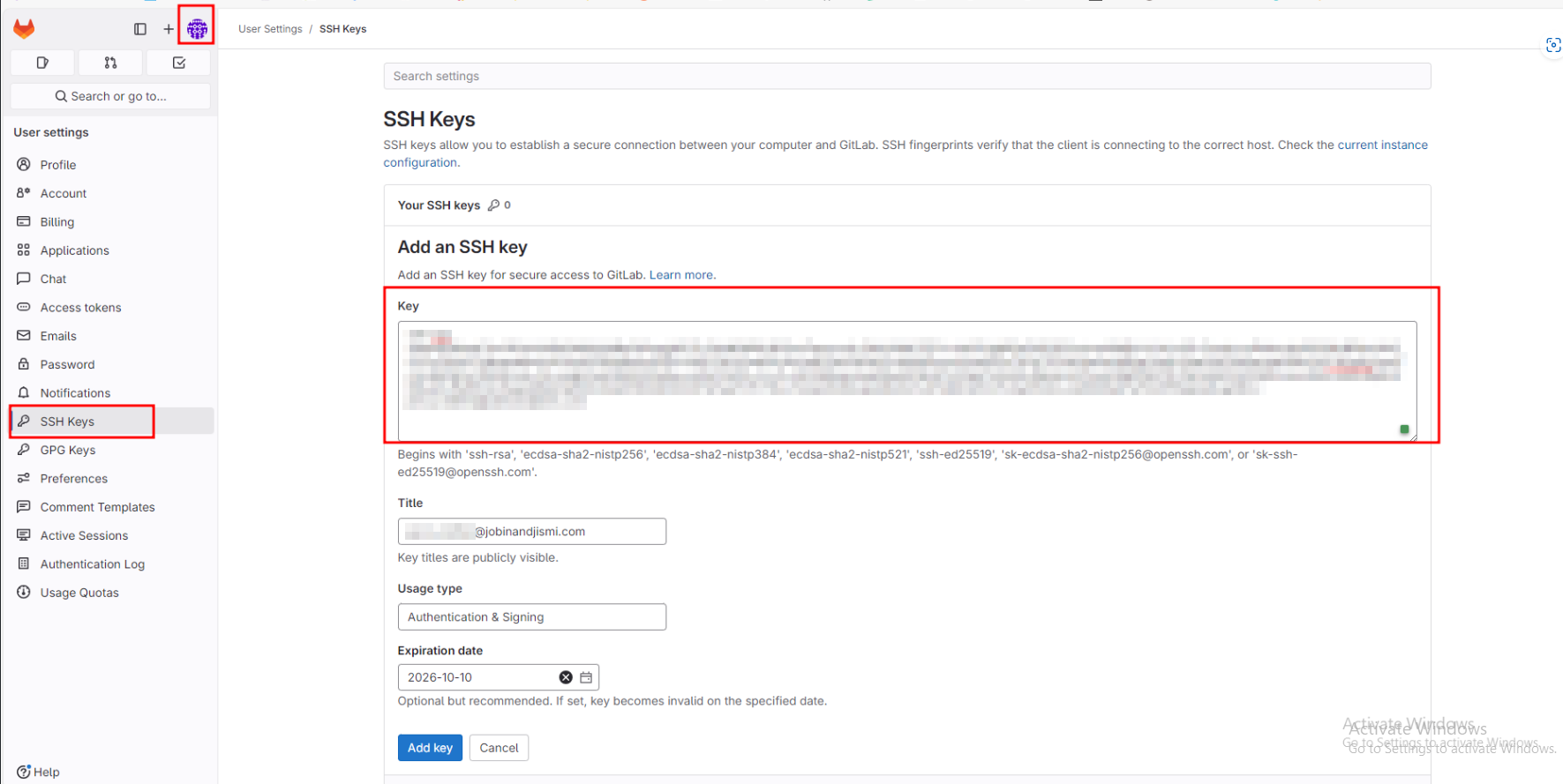 SSH keys allow you to establish a secure connection between your computer and GitLab.