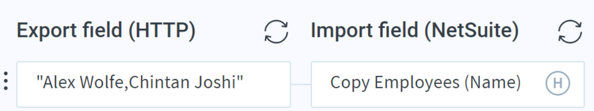 - To map multiple values to a multiple select field, use either an array of the values (name or internal ID) or a string of comma-separated values without spaces.
