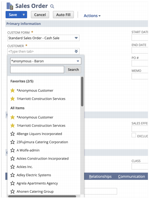 As part of the 2024.1 Release, we can select up to five favorite items in the Customer, Add Multiple, and Items fields on sales orders. In the Add Multiple field, we can show only your favorite items by selecting the Show Favorites Only box.