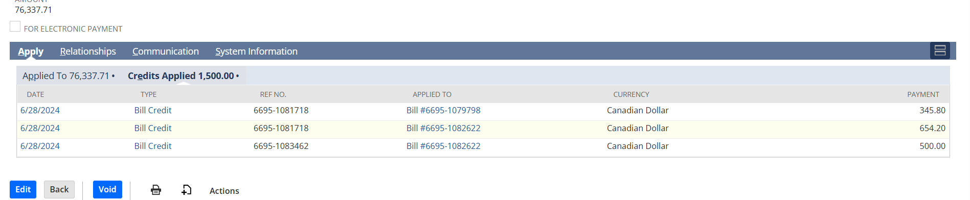 We can fetch the bill credit from a vendor payment transaction using suite QL.