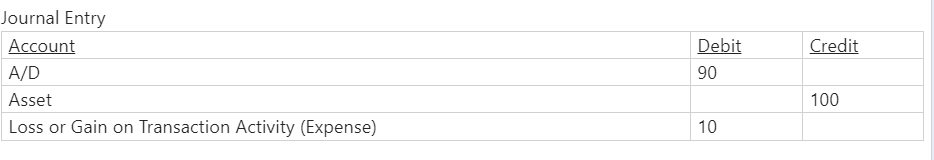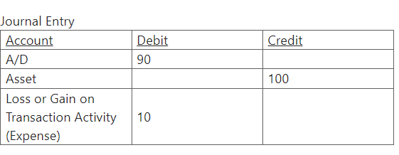 For example, an asset capitalized at $100 and 90% depreciated at the time of Write-Off will generate the following Write Off Journal Entry.