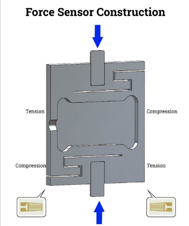 - Depending on the intended usage, force sensors can have a wide range of sizes and shapes. A force sensor consists of the following three fundamental parts. Finally, the circuit section is typically formed of enameled wire or PCB board, with the force-sensitive components typically composed of aluminum alloy, alloy steel, and stainless steel. The circuit is created by connecting these gauges across the sensing element; the conversion element is frequently a strain gauge made of a coil. To achieve the same outcomes, it is also possible to use a piezoelectric sensor that runs on a crystal.