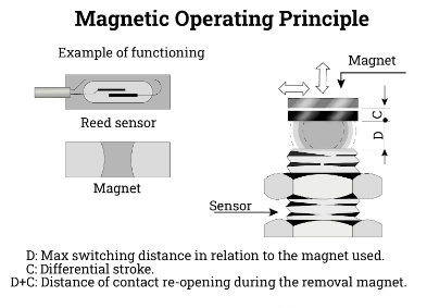 - A permanent magnet’s presence activates magnetic sensors. Reed contacts, whose thin plates are hermetically enclosed in a glass bulb with inert gas, form the foundation of their working theory. The thin plates bend and touch one other when a magnetic field is present, creating electrical contact. A specific substance that is particularly suited for low current or high inductive circuits has been applied to the plate’s surface.