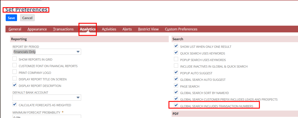 - Global Search Includes Transaction Numbers: Mark Checkbox