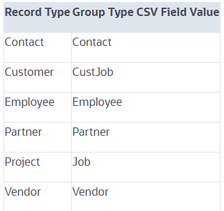When importing groups, it is important to use the correct value in the Group Type field. The values are:
