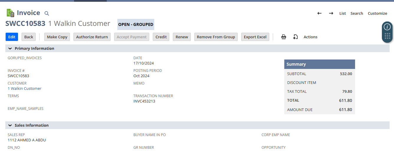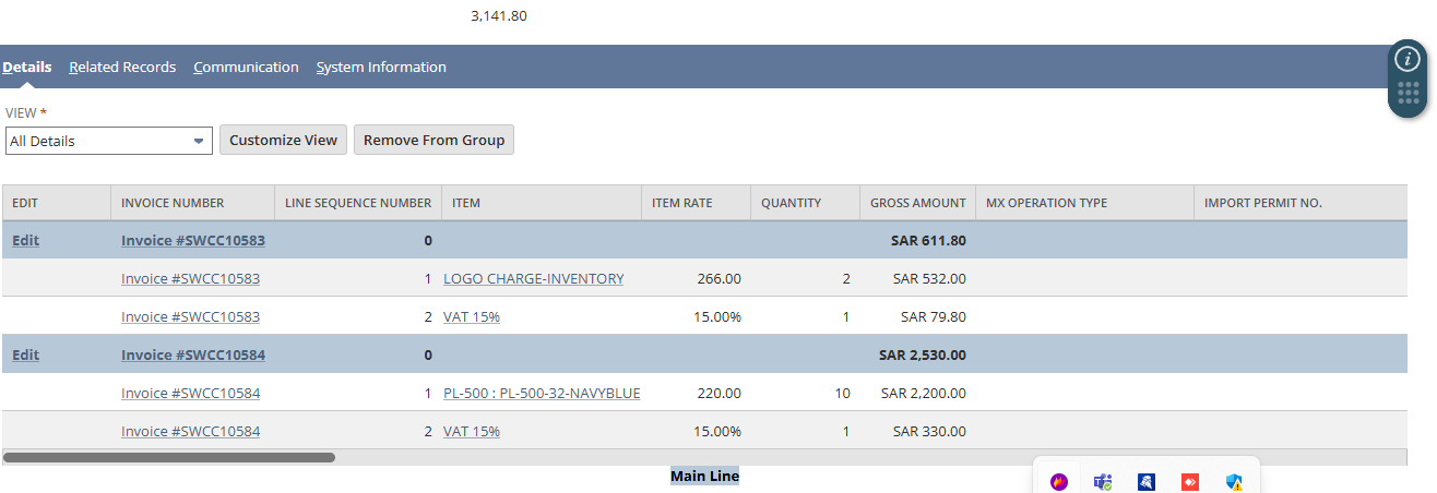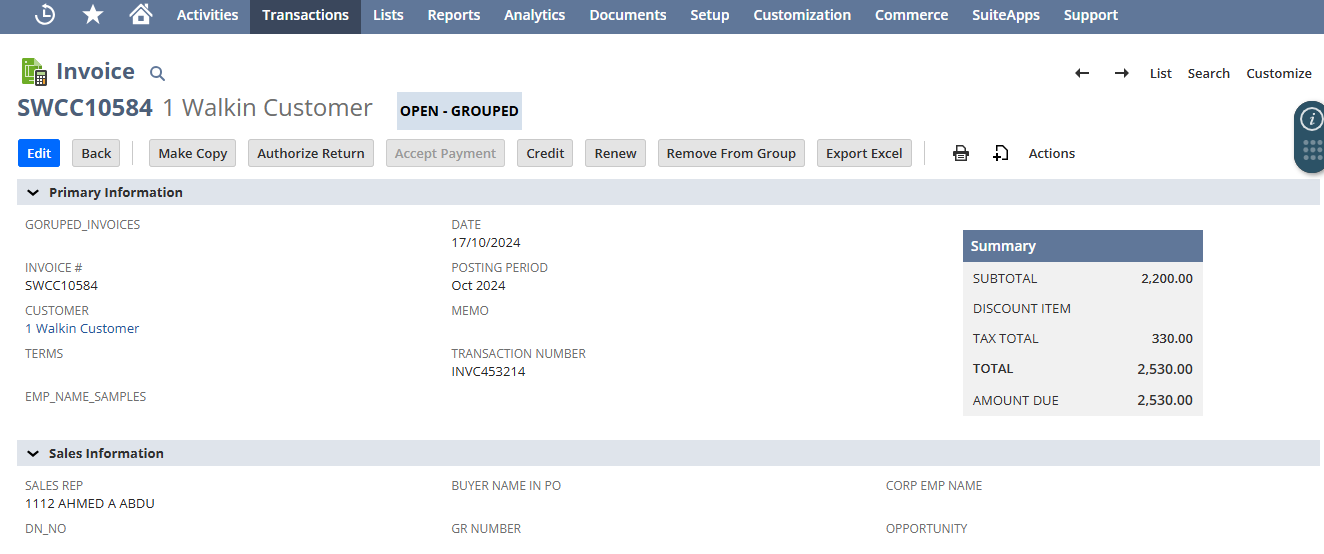 this is the group invoice created the invoices are SWCC10583 and SWCC10584