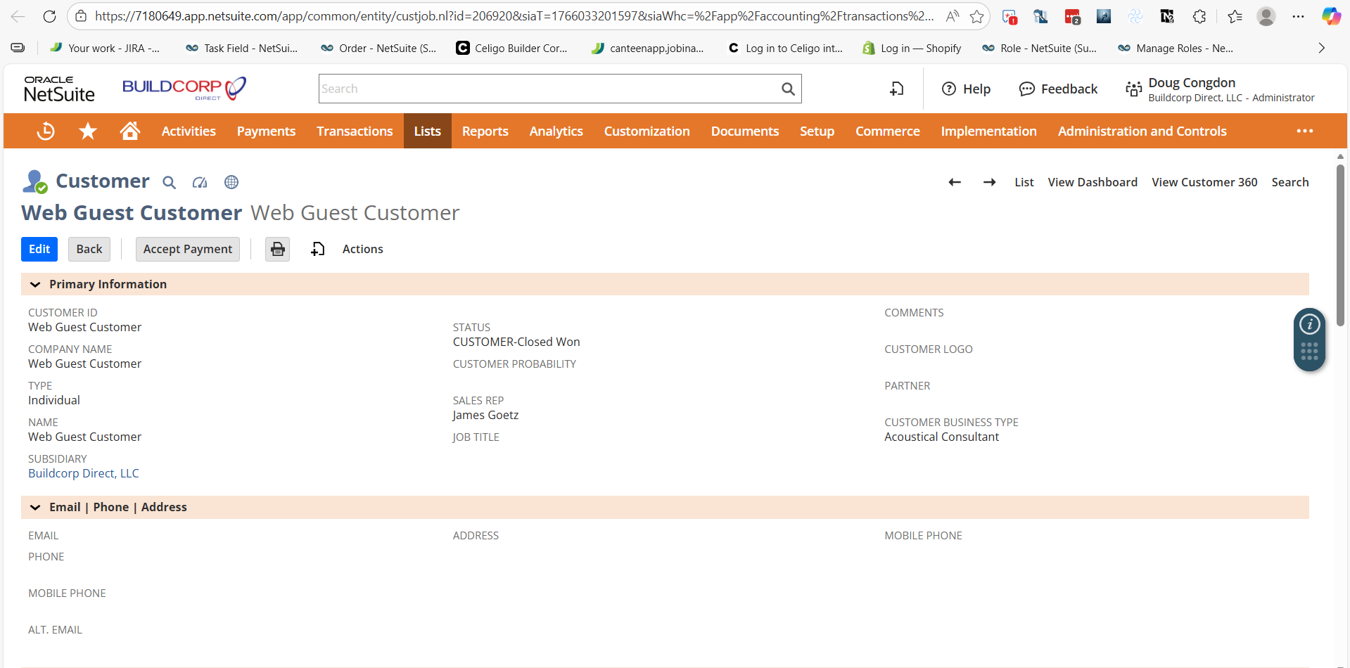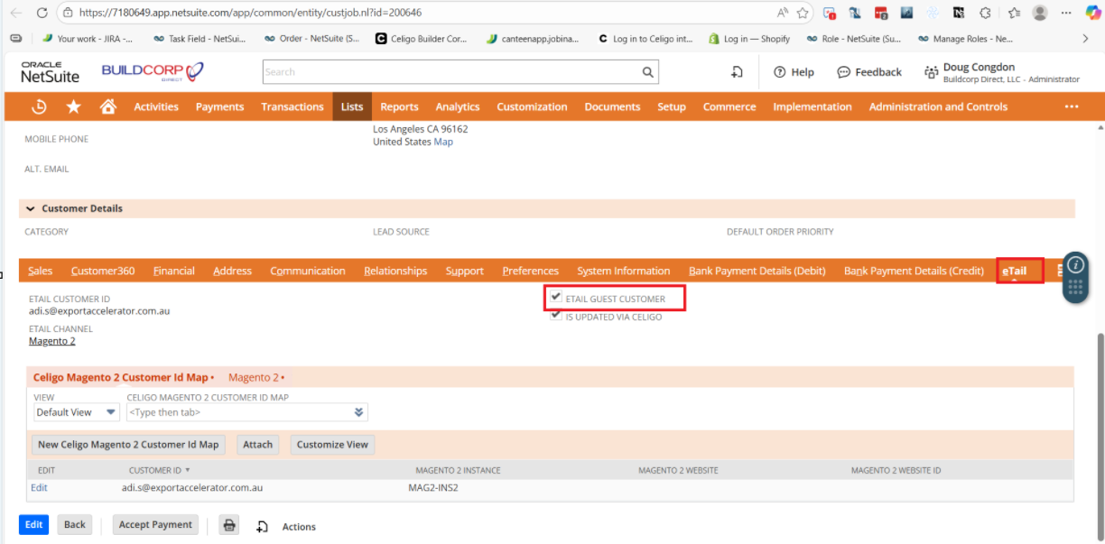 If the business requires each guest checkout order to create a new customer in NetSuite, Celigo supports this configuration.
