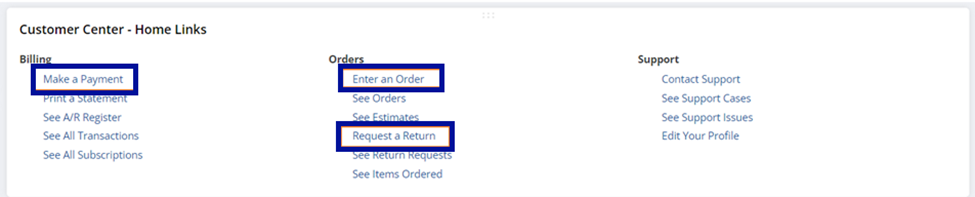 This article provides guidance on how to hide or remove specific links in the Customer Center, such as “Enter an Order,” “Make a Payment,” and “Request a Return.” This can be useful when you want to direct customers to custom links or prevent them from using certain functionalities.