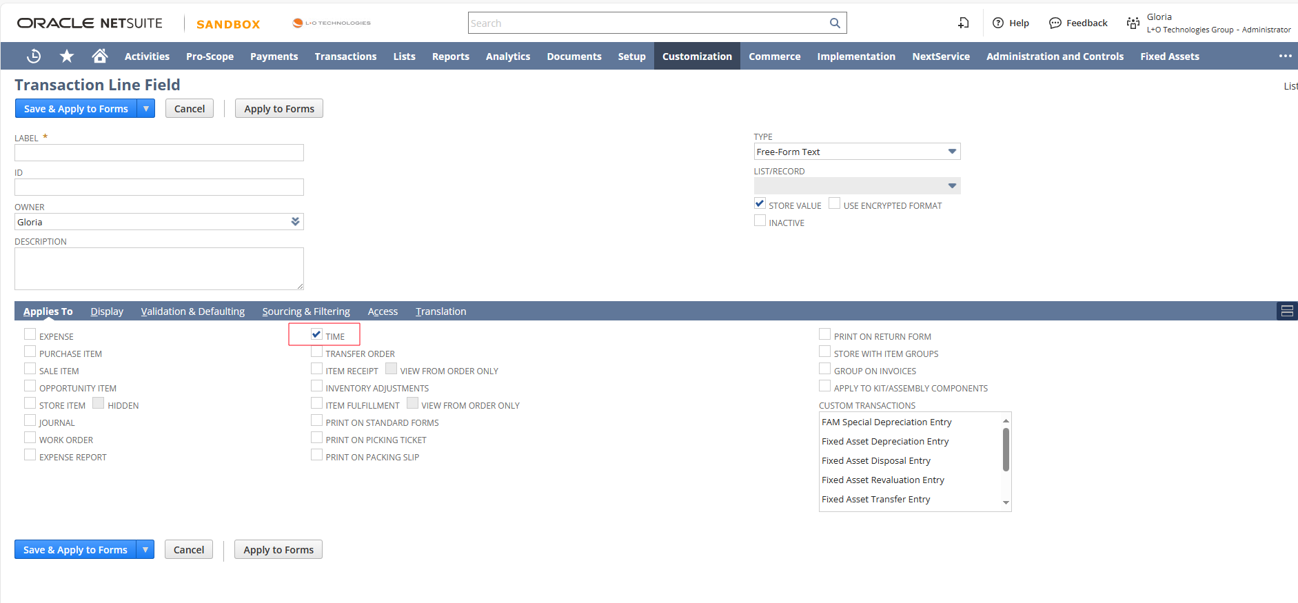 In the Field creation page, select “Time” under the Applies To sub-tab.
