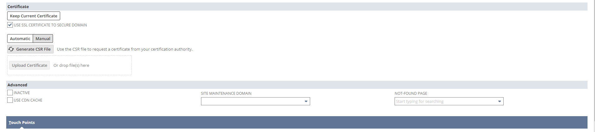 - Go to the domain record on the NetSuite, click on Manual Certificate.